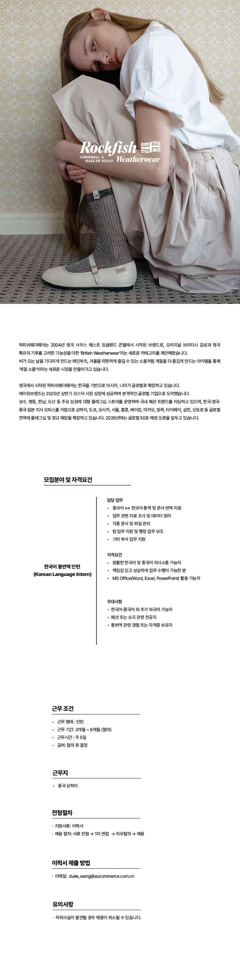 - 한국어·중국어 외 추가 외국어 가능자 - 패션 또는 유통 관련 전공자 - 통번역 관련 경험 또는 자격증 보유자